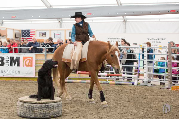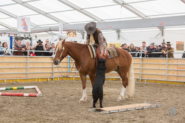 Die täglichen Auftritte in der kleinen Arena fanden immer vor zahlreichem und interessiertem Publikum statt. Der Applaus der Messebesucher zeigte auch, dass die Vorführungen beim Publikum gut ankamen. Von ruhiger Bodenarbeit bis zur Arbeit mit dem Hund und dem Lasso, gab es alles zu sehen. Nicht wenige Zuschauer waren sehr erstaunt, wie der Freiberger unter dem Westernsattel einmal mehr seine Polyvalenz zum Besten gab. Ein Beweis mehr, wie sehr vielseitig dieses Pferd ist.